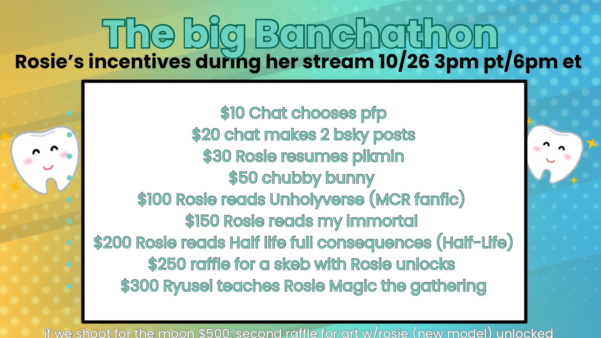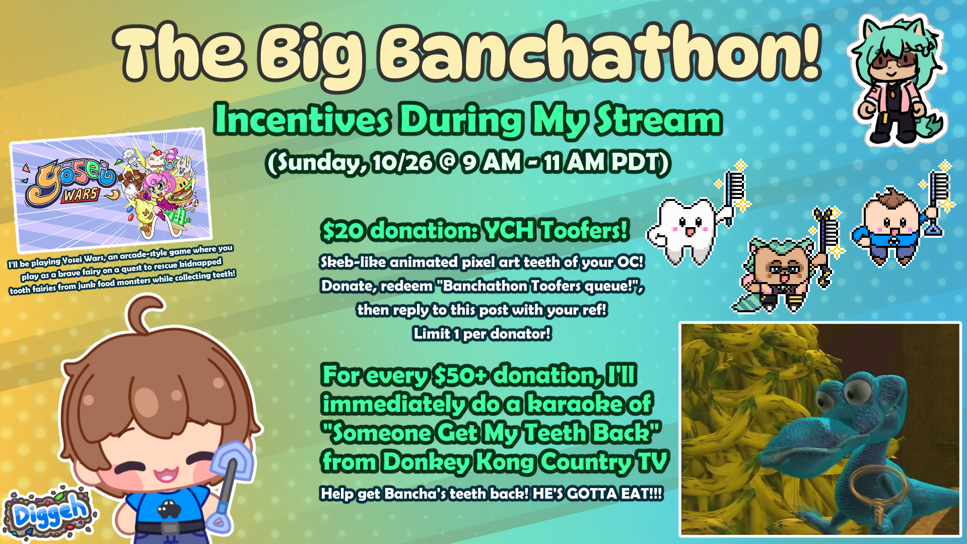 Throughout the Big Banchathon, a wide variety of incentives will be offered based on donations. These range from the entire campaign to individual stream goals!